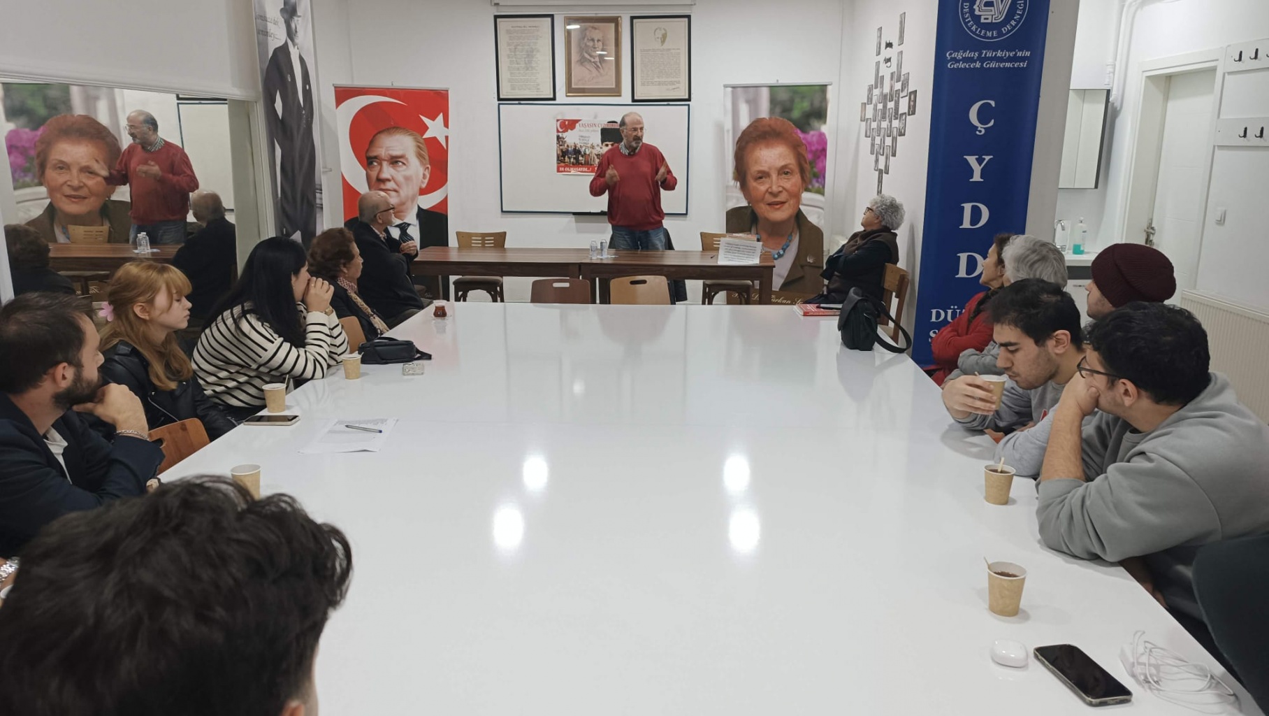 Gazi Mustafa Kemal ATATÜRK’ün daveti ile ülkemize gelen mülteci Alman bilim, sanat ve kültür alanlarında uzman olan bilim insanlarına ithafen yazılan İkinci Vatan Genç Cumhuriyet’e Sığınanlar isimli kitabın yazarı Rifat ESEN’i derneğimizde ağırlamaktan mutluluk duyduk. Rifat Beyin söyleşisinin ardından soru cevap kısmına geçildi. Dernek başkanımız Canan ÇAĞATAY’ın konuğumuza teşekkür belgesi takdimi ile söyleşimiz son buldu.